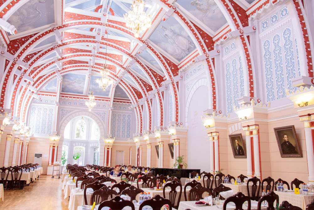 Санаторий «Гурзуфский» находится на Южном берегу Крыма в курортном поселке Гурзуф, разместившимся в 18 километрах от Ялты. В шаговой доступности — Гурзуфская набережная, музей Пушкина, дача Чехова. Рядом — большой выбор кафе и ресторанов. До симферопольского аэропорта — 81 километр, до железнодорожного вокзала — 70. Санаторий занимает благоустроенную территорию площадью 12 гектаров, расположенную в исторической парковой зоне. Оздоровительный гостиничный комплекс состоит из 8 отдельно стоящих корпусов разной этажности — от основного 9-ти этажного корпуса «Бриз», до 2-х этажного «Шаляпинского», отдельного здания столовой, корпуса приемного отделения, а также зданий библиотеки и клуба. Отдыхающие могут выбрать как простые номера Эконом, так и стильные номера категории Люкс. В каждом номере есть собственный санузел с душем или ванной, телевизор, холодильник. В улучшенных номерах имеются кондиционеры и меблированные балконы. В распоряжении отдыхающих тренажерный зал, бильярд и теннисный корт. Гостям доступны услуги прачечной, охраняемая парковка на территории санатория, беспроводной интернет. Деловые мероприятия можно провести в вместительном конференц-зале, рассчитанном почти на 500 гостей. Для переговоров и совещаний подойдет малый конференц-зал. Оба помещения оборудованы современной мультимедийной техникой. Мелко-галечный лечебный пляж санатория Гурзуфский расположен недалеко от корпусов. Благоустроенный, изолированный, протяженностью 240 метров. Пляж оборудован тентами, раздевалками, душем и туалетами, шезлонгами и индивидуальными зонтами от солнца. На территории пляжа работают спасатели и медпункт с дежурной медсестрой, есть зона wi-fi покрытия. Многопрофильный санаторий «Гурзуфский» осуществляет лечение и профилактику заболеваний нервной системы, опорно-двигательного аппарата, болезней сосудов и сердца, лор-органов. На основе современной диагностической базы отдыхающим предлагаются такие методы лечения, как бальнеотерапия, грязелечение, газолечение, физиотерапия, есть курс ЛФК и массажа.